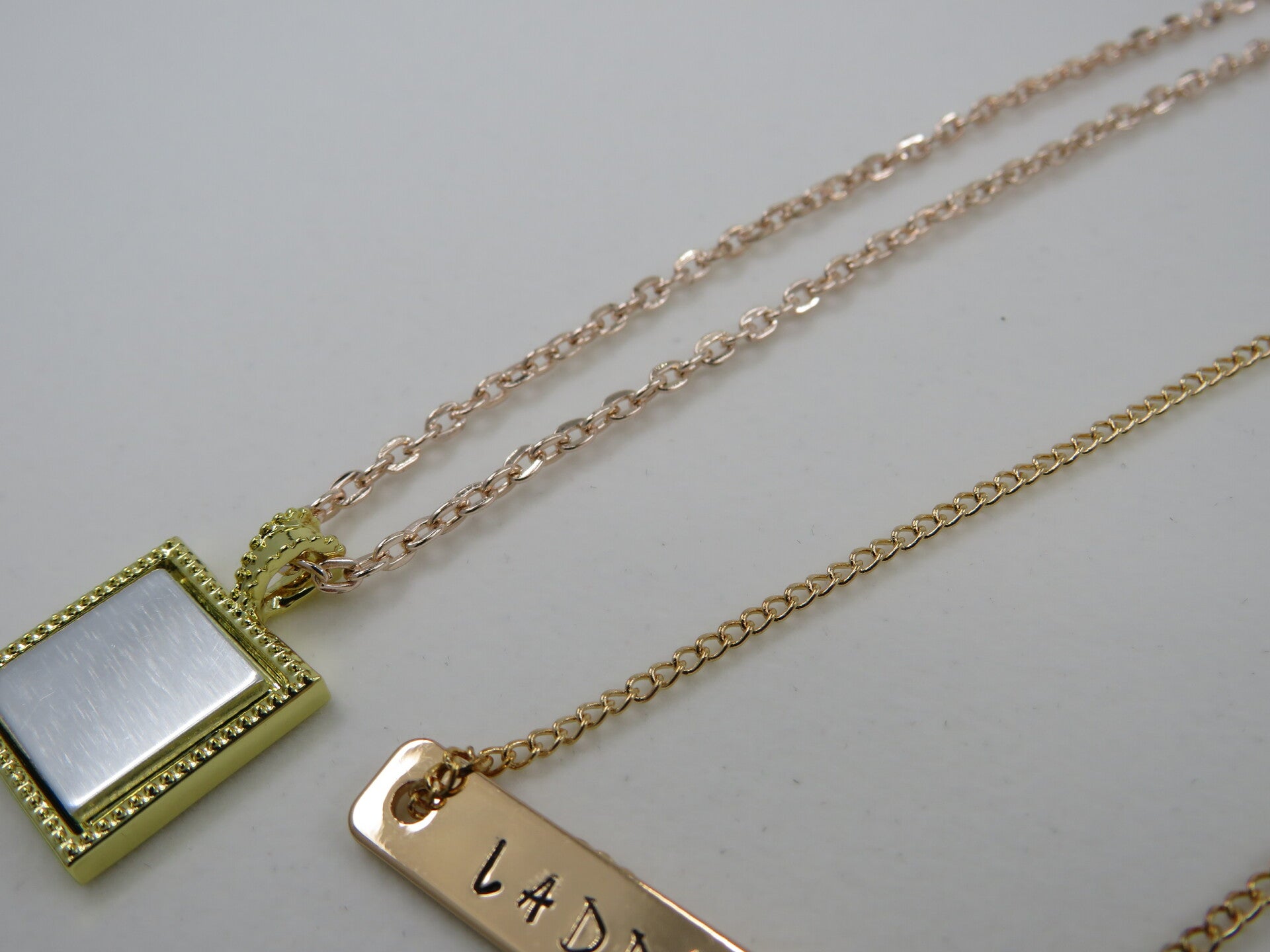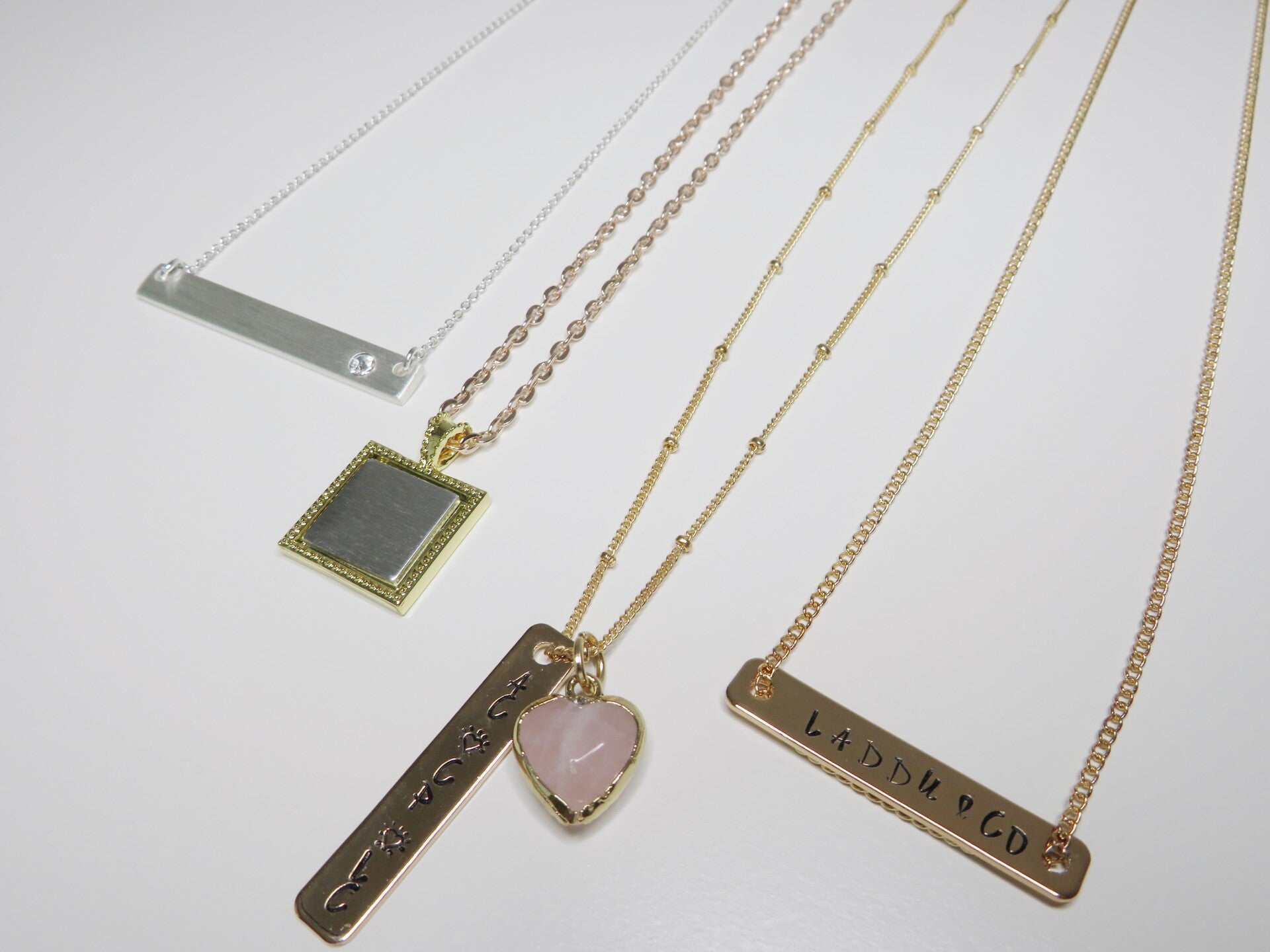 Gold, silver, short or long. Pick a style, as with these you can't go wrong. Initials or a name, a date or a time, customize these necklaces and then you can call them mine.